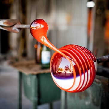 After spending 6 weeks in Venice, Lydia became fascinated by glass. She learned the basics in a hot shop at Salt Glass Studio, in North Norfolk, then travelled about learning at different studios across the UK. Now she has her own lampwork set, which involves heating rods of glass on a propane and oxygen torch, then manipulating them wi