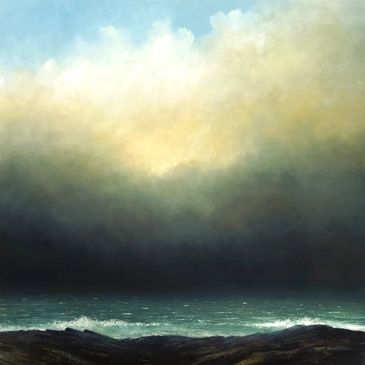 The presence and absence of light is the most fundamental concept behind all my paintings. Although often diffused or obscured, it permeates even the heaviest of skies, giving hope and acting as an uplifting counterpoint to dark, mysterious seas. Feelings of insignificance and isolation are instilled by the vast depth and scale of these t